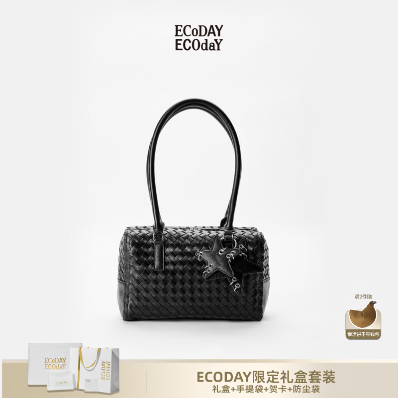ECODAY编织包公文包单肩手提腋下包波士顿包送女友生日礼物 黑色 限定礼盒