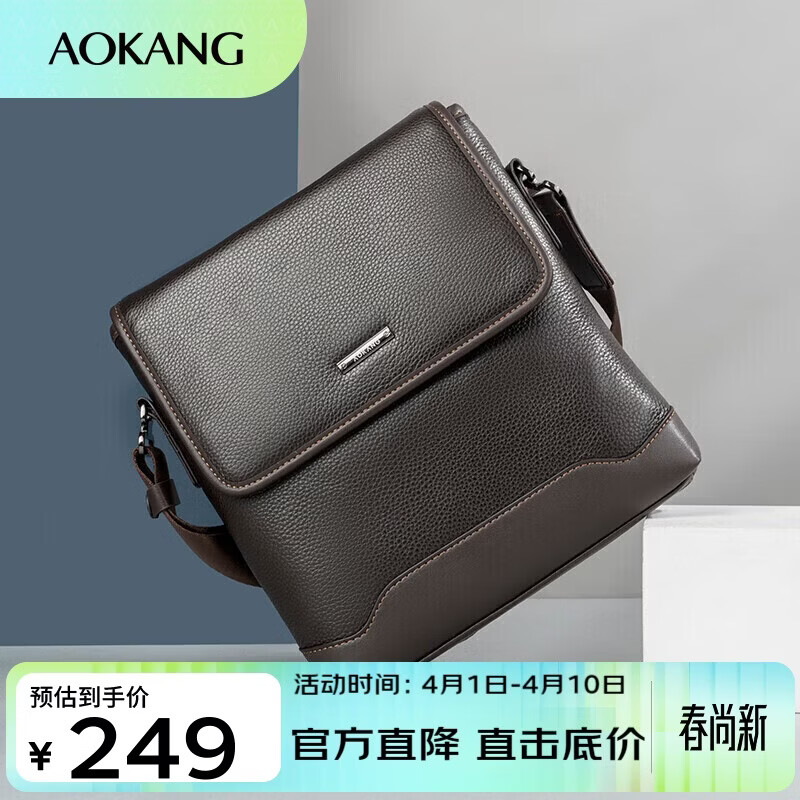 奥康单肩包男包竖款日字包英伦牛皮斜跨公文包情人节礼物送男友老公