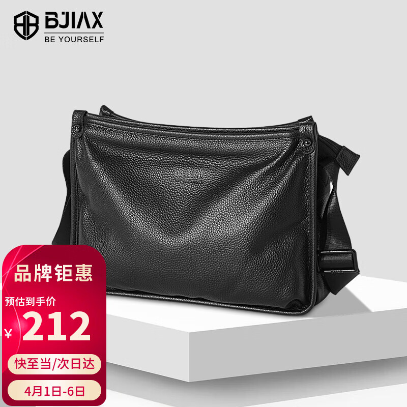 宝加西(BJIAX)真皮单肩斜挎包牛皮包斜跨商务休闲男士包通勤单肩挎包父亲送礼物
