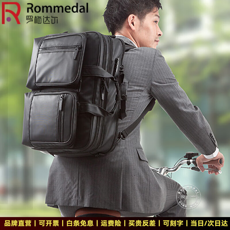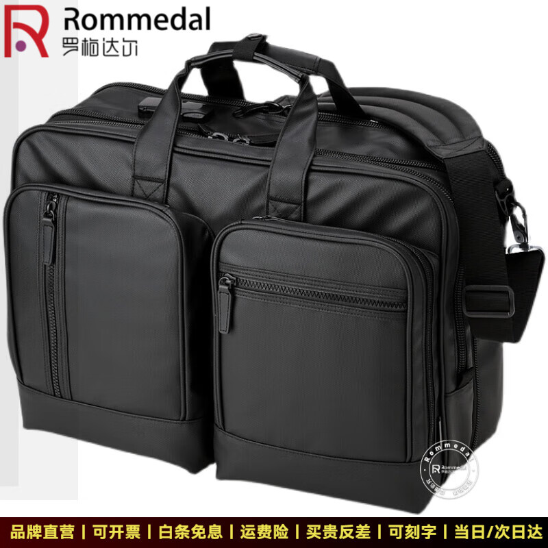 罗梅达尔(Rommedal)商务公文包男多功能大容量加厚防水电脑包手提单肩包双肩出差包 黑色2【长47*高32*厚18cm】 特大包 15.6英寸