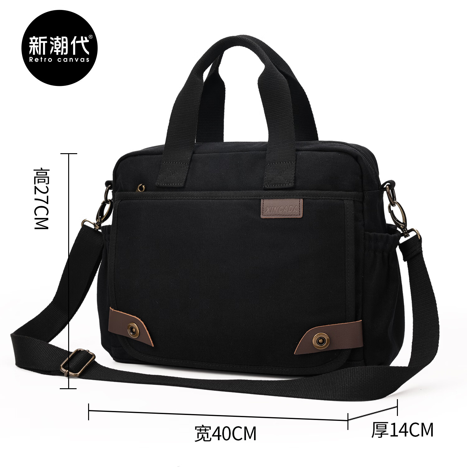 新潮代2026新款大容量男士单肩包帆布手提商务公文包休闲多功能斜挎包 蓝黑色【可放14英寸笔记本电脑】