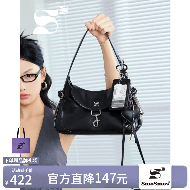 SmoSmos【海妖包7.0】原创设计复古牛皮包腋下包精致小包手提包女 夜车黑