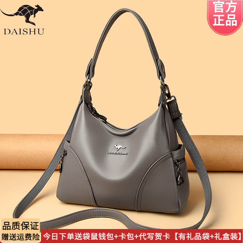 正品袋鼠包包女皮包时尚大气妈妈包2026新款斜挎包女送妈妈单肩包