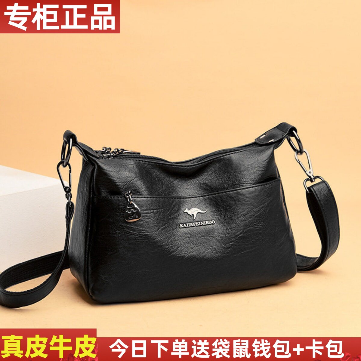 正品袋鼠真皮包包2026新款中年妈妈女士单肩斜挎包牛皮小包软皮潮