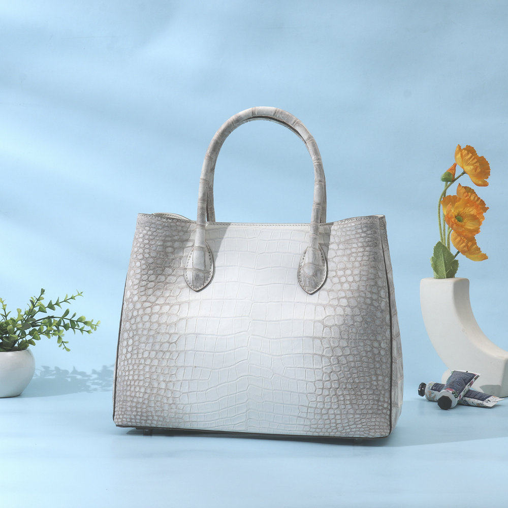 普洛克正品女包 雾面暹罗鳄鱼皮喜马白潮流手提包大容量真皮包包