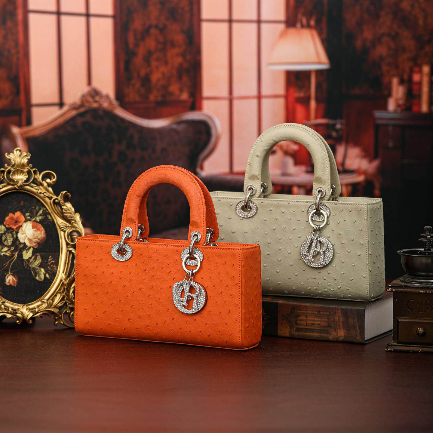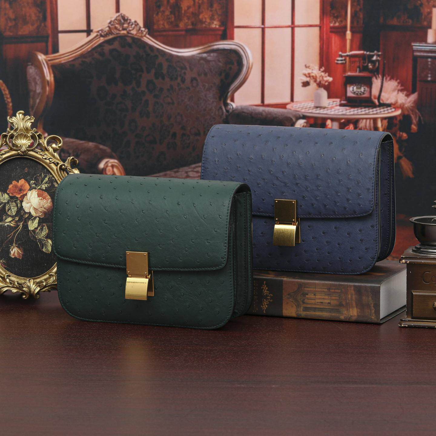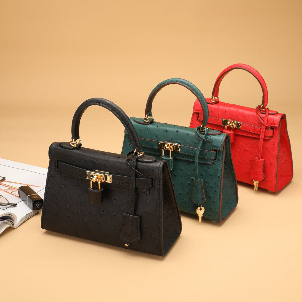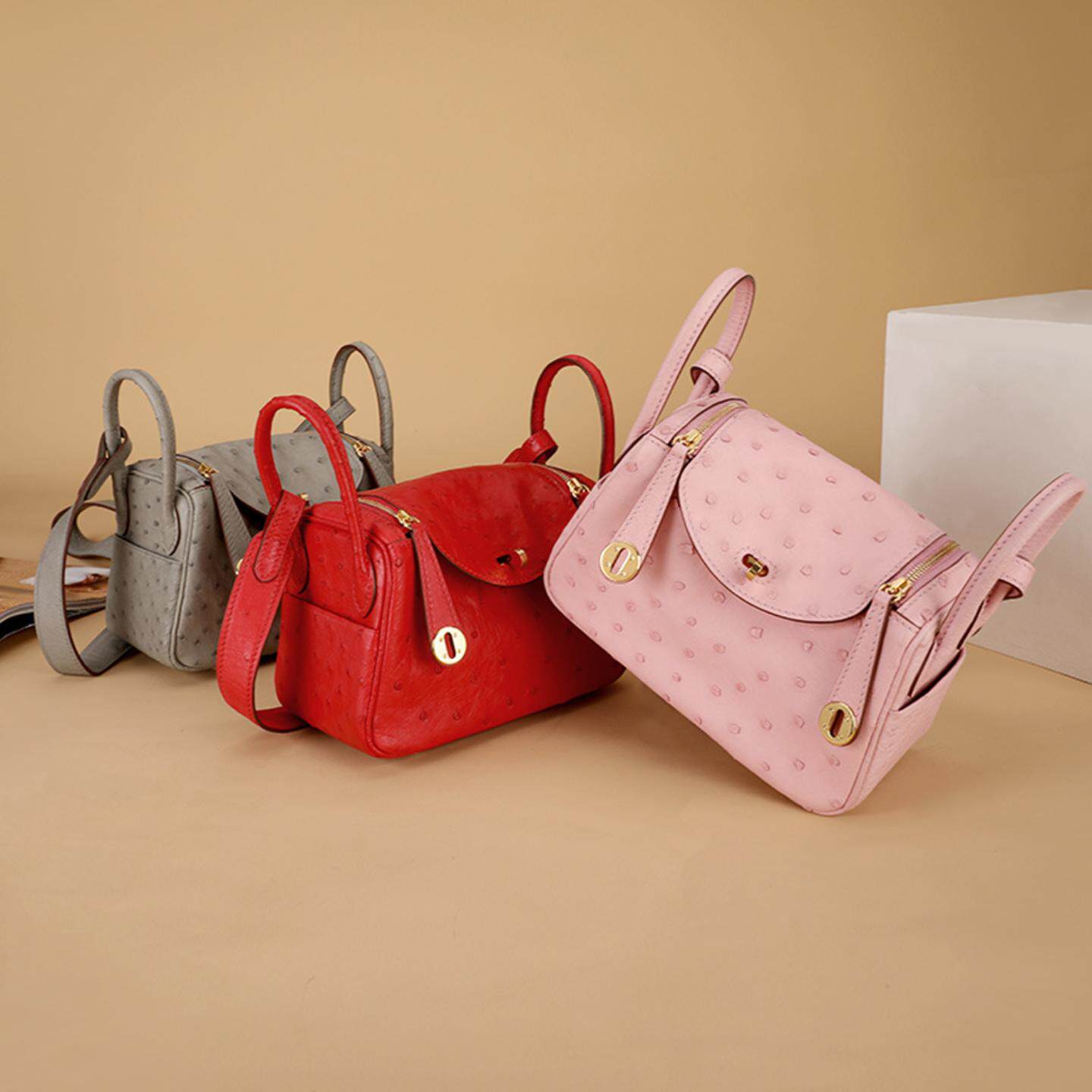 普洛克正品女包 小号凯丽鸵鸟皮真皮包包手提小包潮流单肩斜挎包