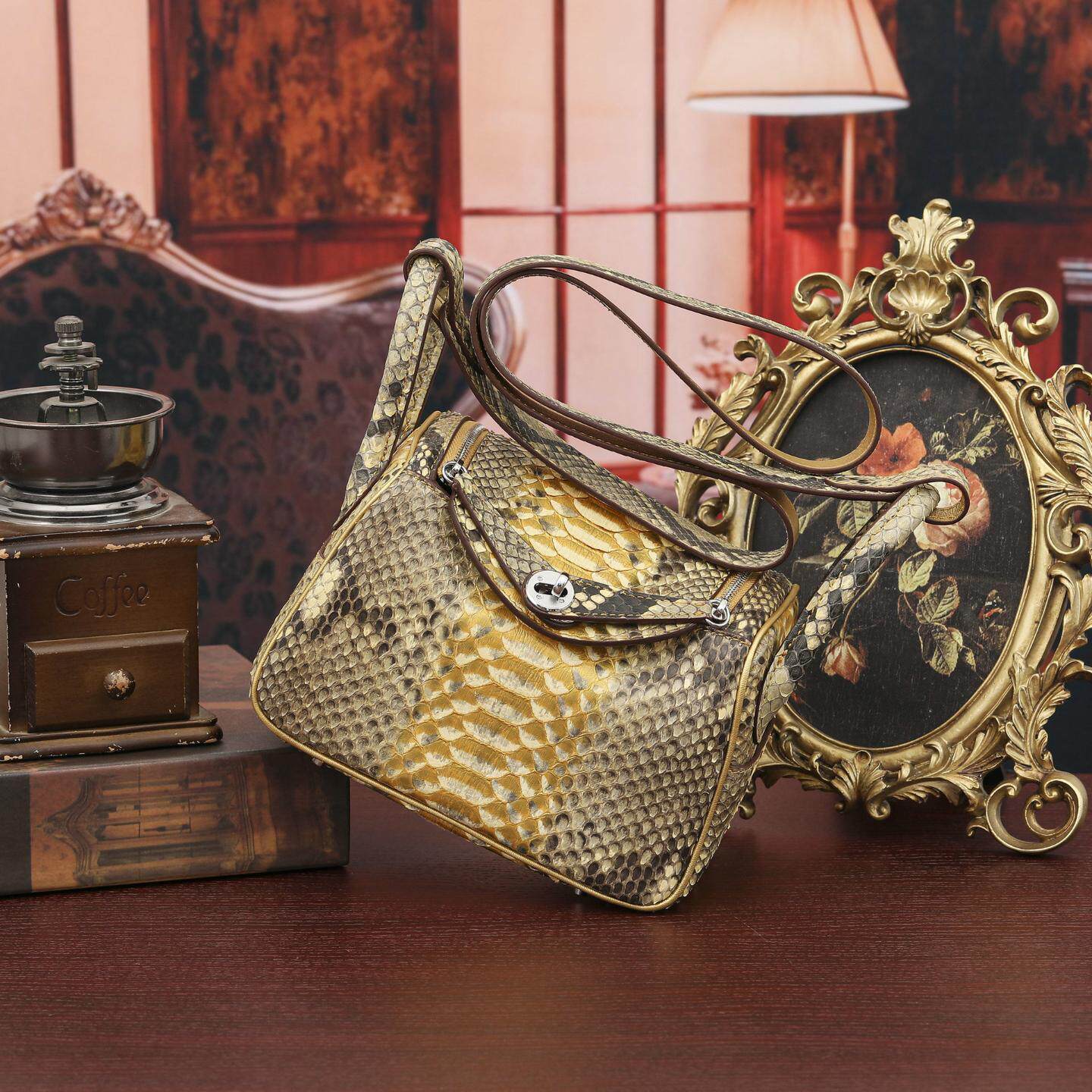 普洛克正品女包 蟒蛇皮时尚手提包手挽竹节包斜挎包潮流真皮包包