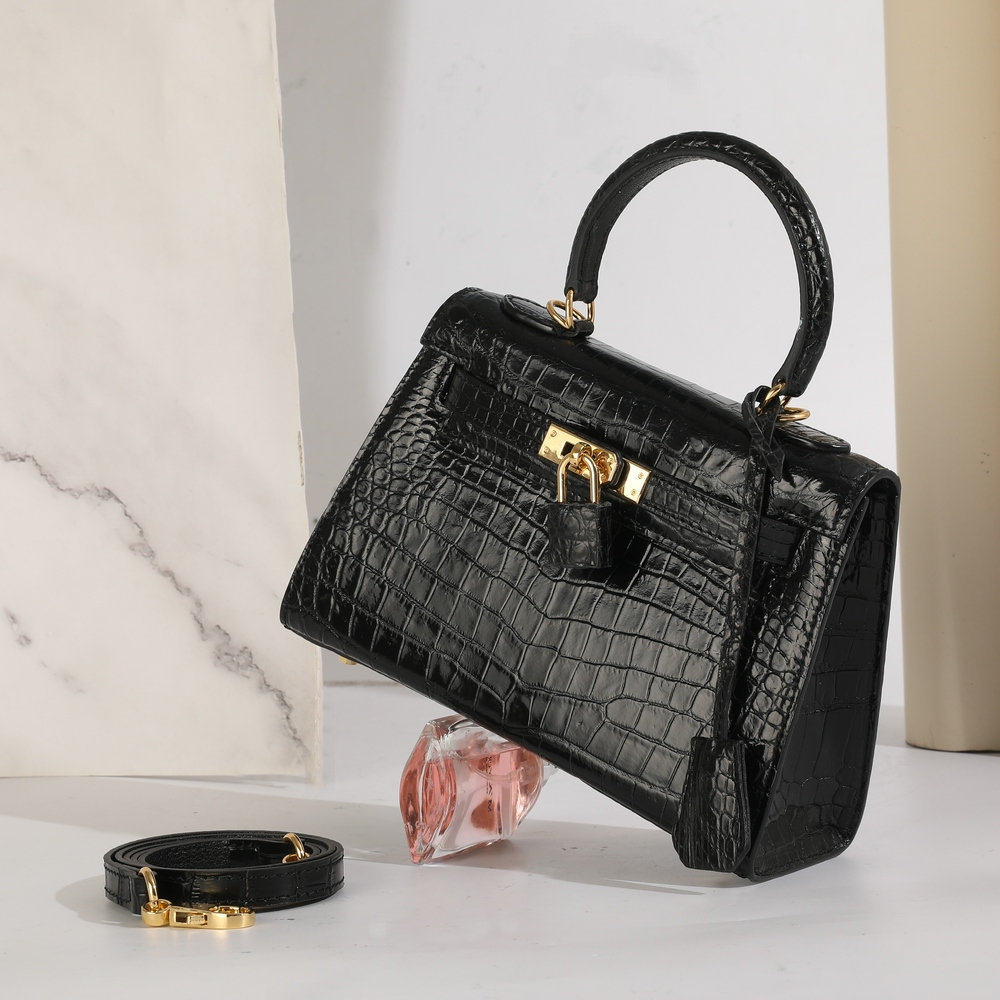 普洛克正品女包 小号凯莉包暹罗鳄鱼肚皮真皮包包时尚手提包