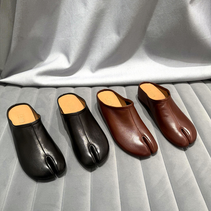 欧洲站真皮包头拖鞋女2026年早春新款欧货厚底坡跟分趾拖休闲半拖