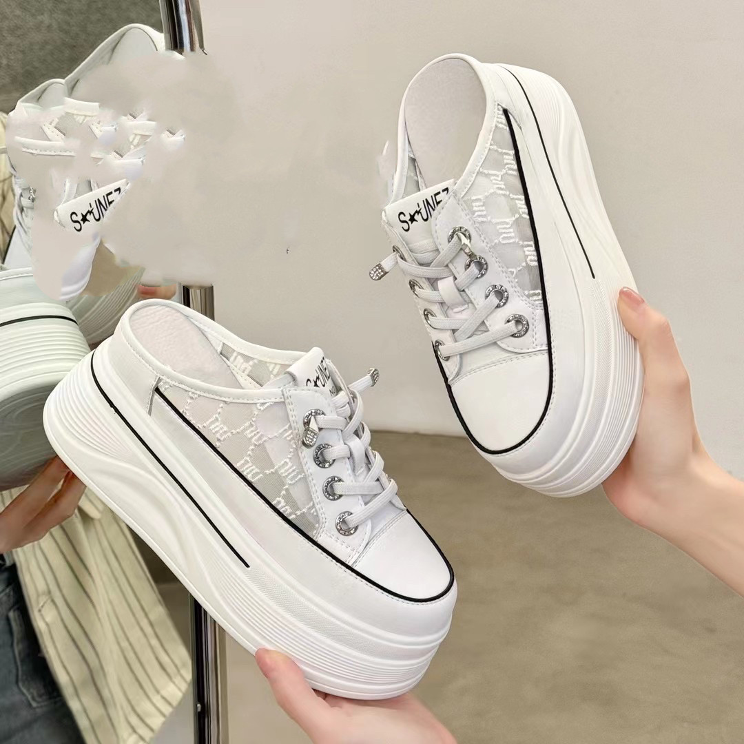 香港真皮包头半拖鞋女外穿2025春秋季新款百搭懒人厚底松糕小白鞋