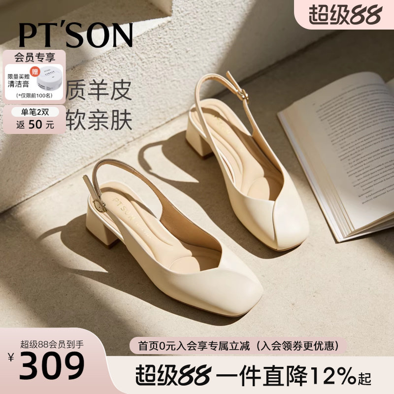 百田森真皮包头凉鞋女外穿粗跟配裙子不累脚绝美凉单鞋法式绝美鞋