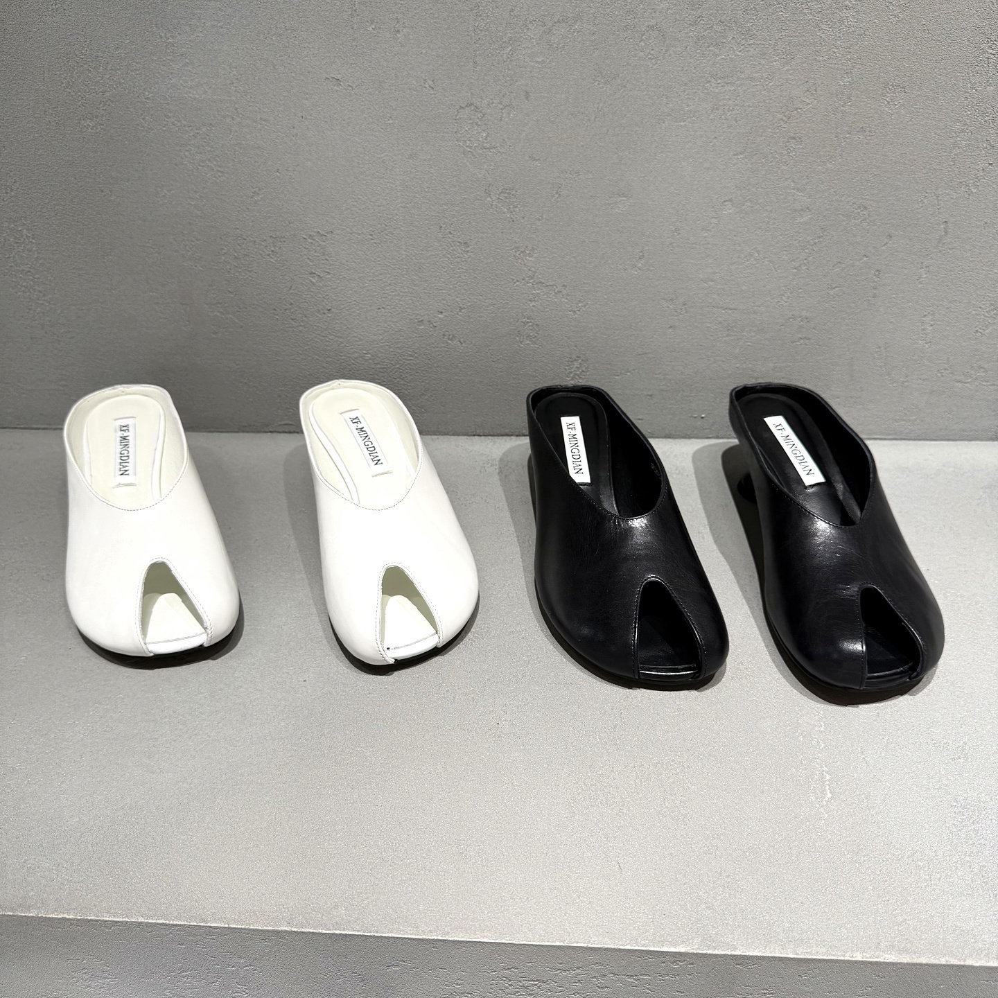 372中跟尖头包头凉鞋镂空头层牛皮包跟粗跟套脚低跟木森鸟女鞋夏