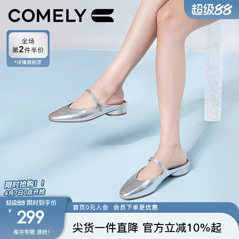 康莉半包穆勒鞋女春夏新款低跟优雅真皮包头拖外穿休闲拖鞋一脚蹬