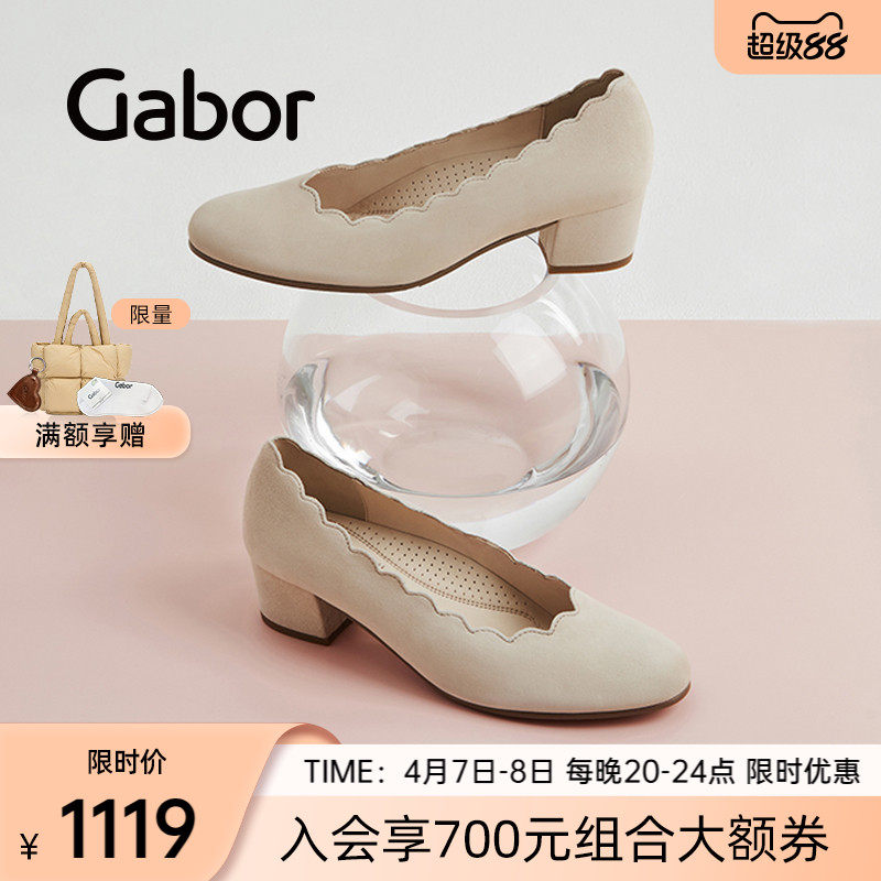 Gabor德国嘉步62221单鞋 水波纹鞋口皮包跟优雅单鞋