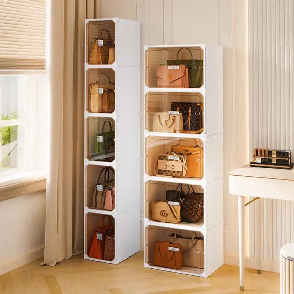 包包收纳神器家用多层透明盒子手袋展示柜内放皮包防尘落地置物架