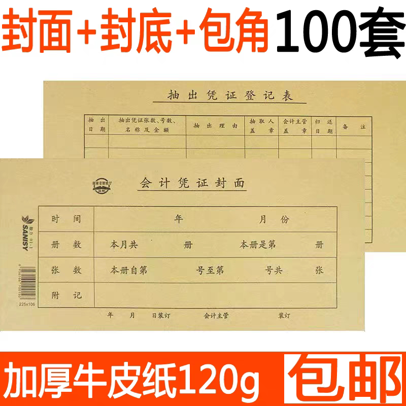100套财务会计记账凭证封面装订封皮包角通用抵扣加厚牛皮纸盒