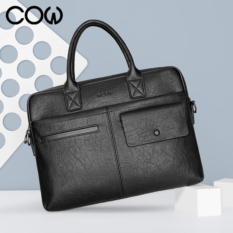 COW男包男士手提包商务公文包电脑包时尚潮流单肩斜挎包 C-6669 黑色