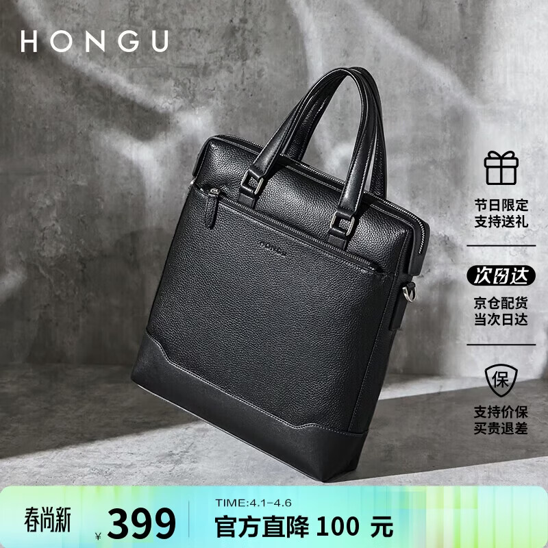 红谷男士竖款手提公文包头层牛皮包单肩斜跨包商务包 生日礼物送男友