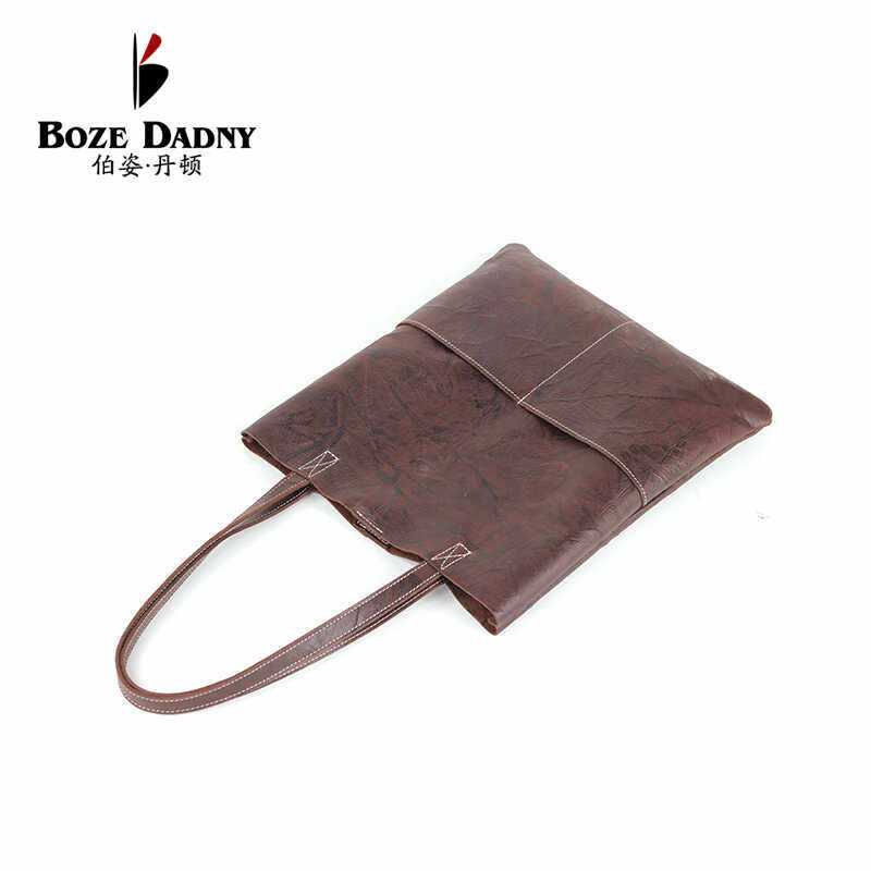 伯姿丹顿时尚真皮大容量手提购物包头层牛皮单肩托特包休闲软皮包