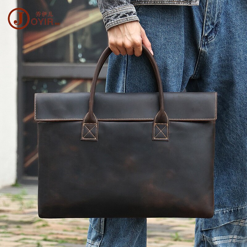 2026新款真皮复古商务手提包出差轻便电脑包疯马皮感皮包男士