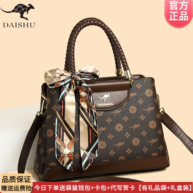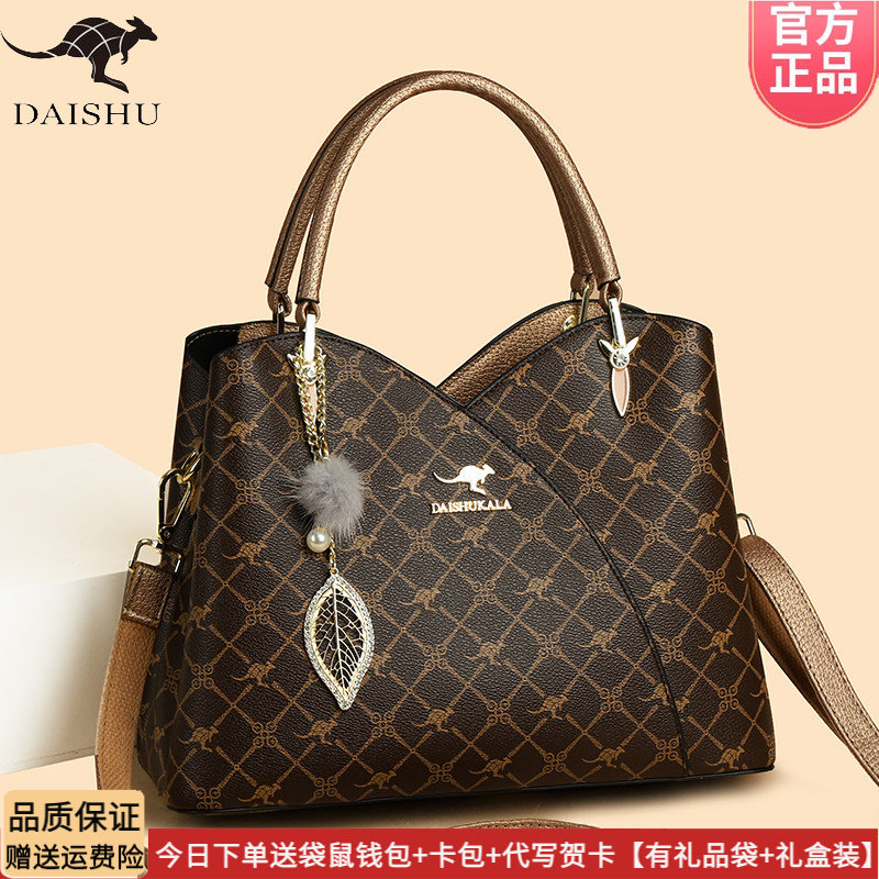袋鼠皮包女士包包2026新款大气中年送妈妈款手提包时尚实用斜挎包