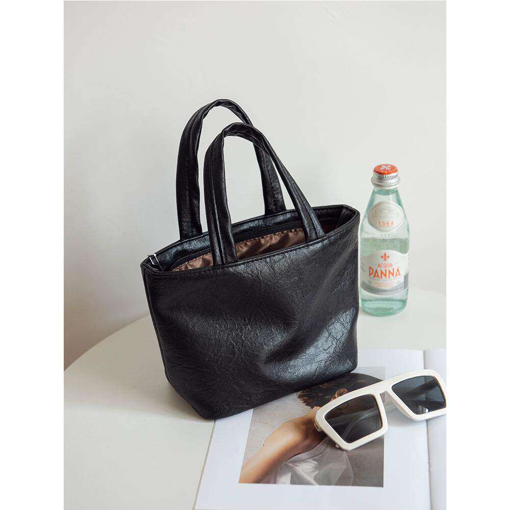 软皮手提包2024新款女包简约小皮包时尚化妆包纯色可爱迷你手拎包
