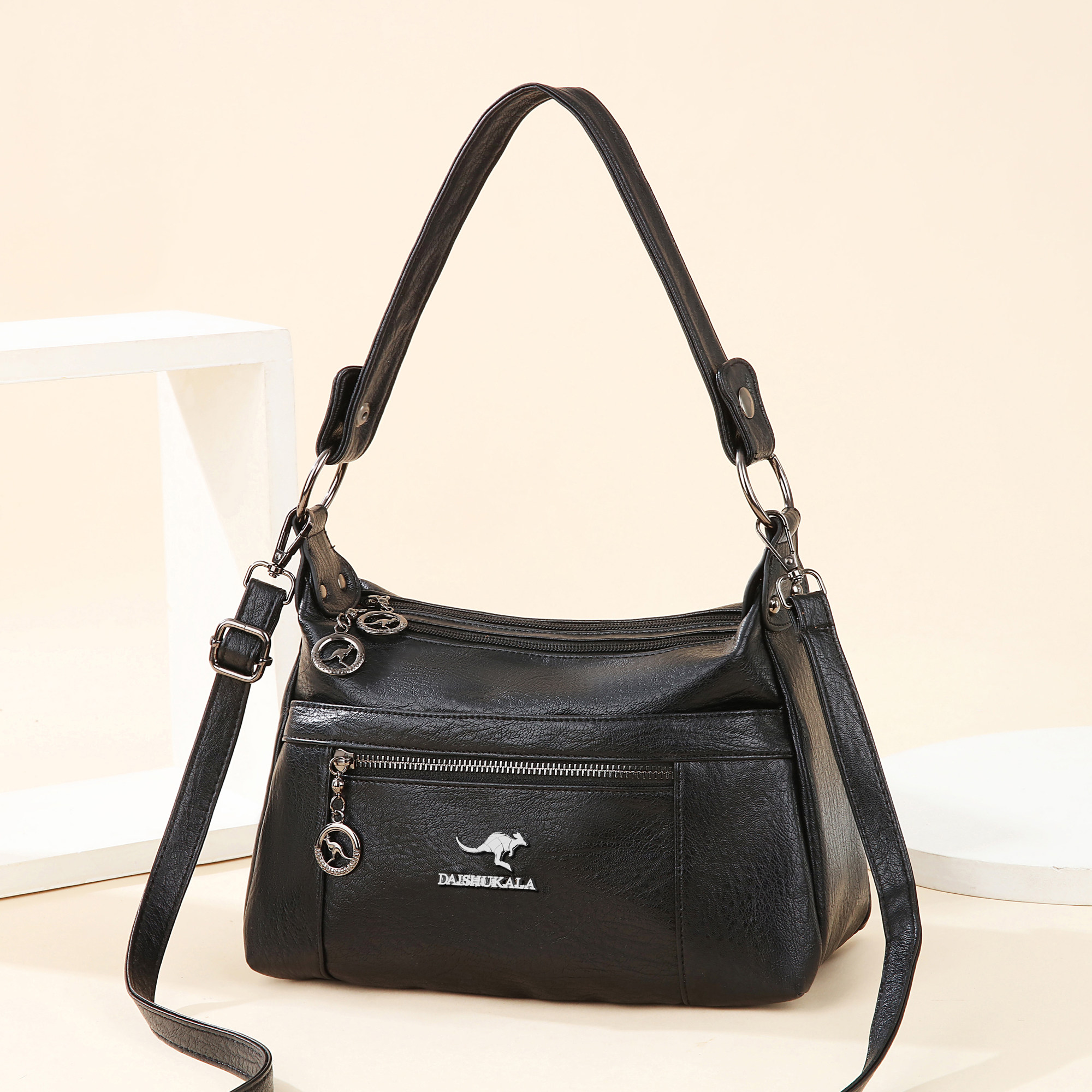 袋鼠小包包女皮包2026新款高级感软皮斜挎包百搭时尚单肩包妈妈包