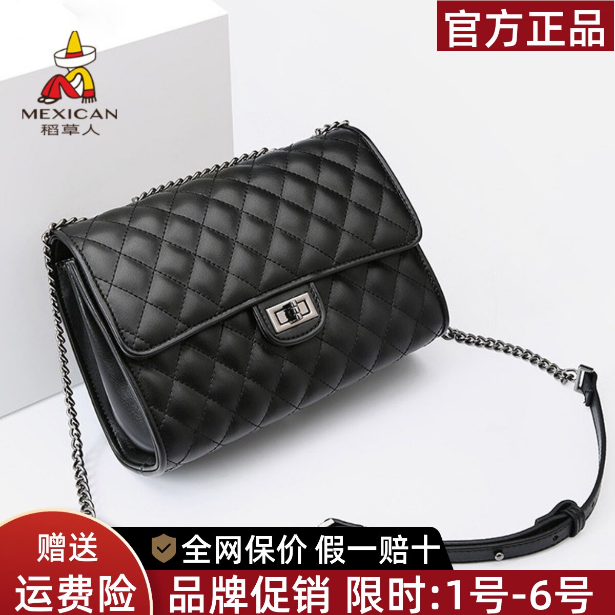 稻草人真皮包包女2026年新款链条女包小香风菱格单肩包牛皮斜挎包