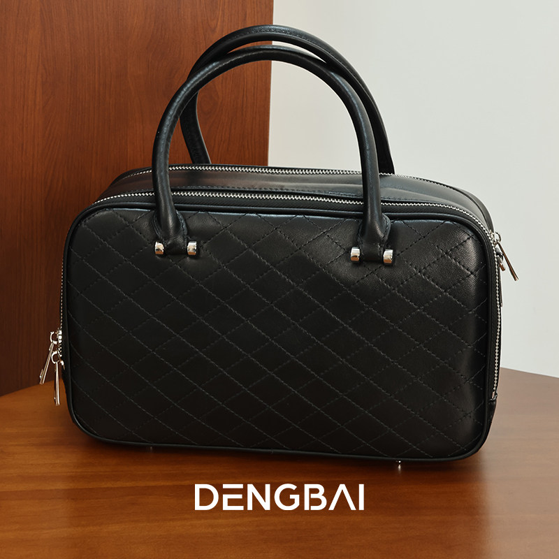 登白DENGBAI 头层羊皮 保龄球包 简约高级包包单肩斜挎手提时尚
