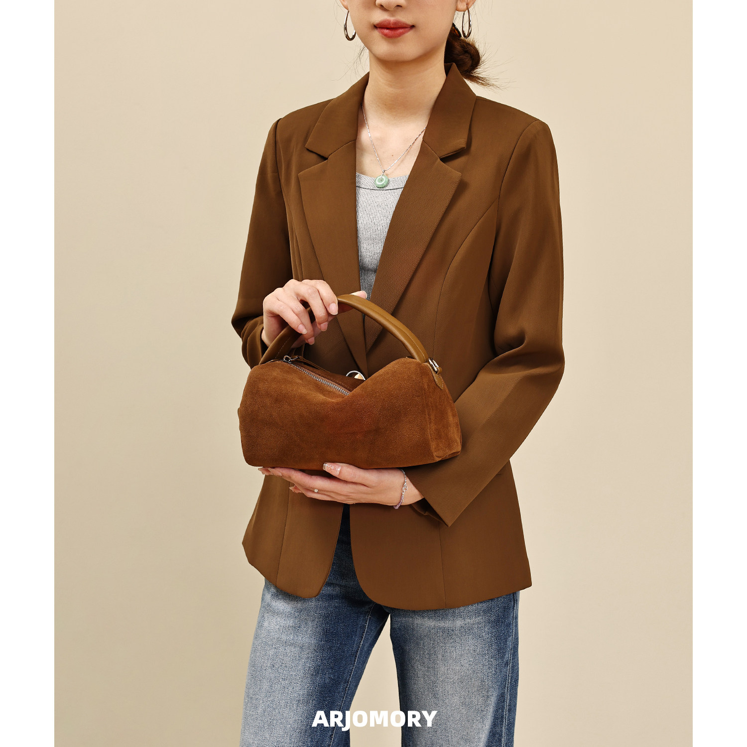 ARJOMORY小众麂皮绒手提枕头包女2025早秋新款高级感单肩包斜挎包