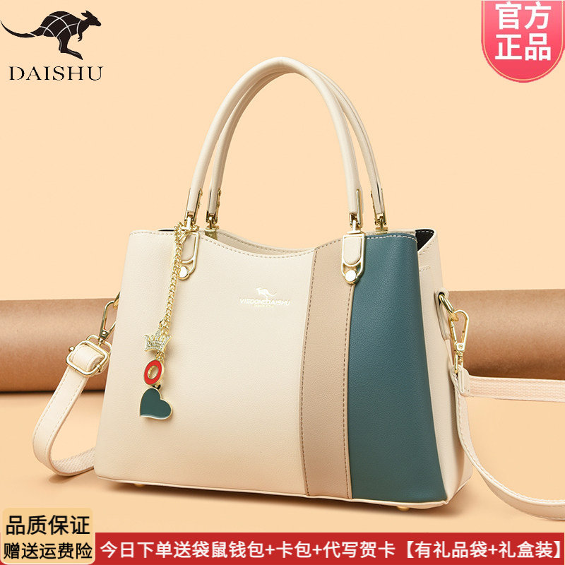 袋鼠专柜女包大气简约女士手提包2026新款中年送婆婆妈妈包真皮包