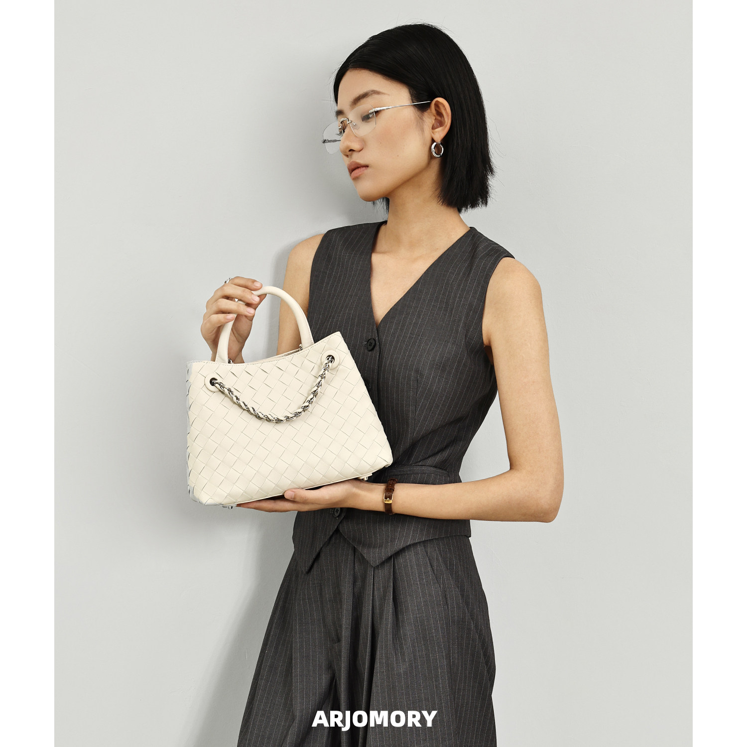 ARJOMORY小众设计时尚层牛皮手工编织女包2026新款复古百搭单肩包