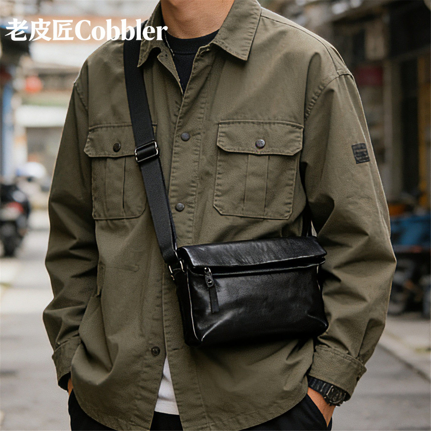 老皮匠欧美男士真皮单肩包斜挎包手机包软皮包小包牛皮感邮差包