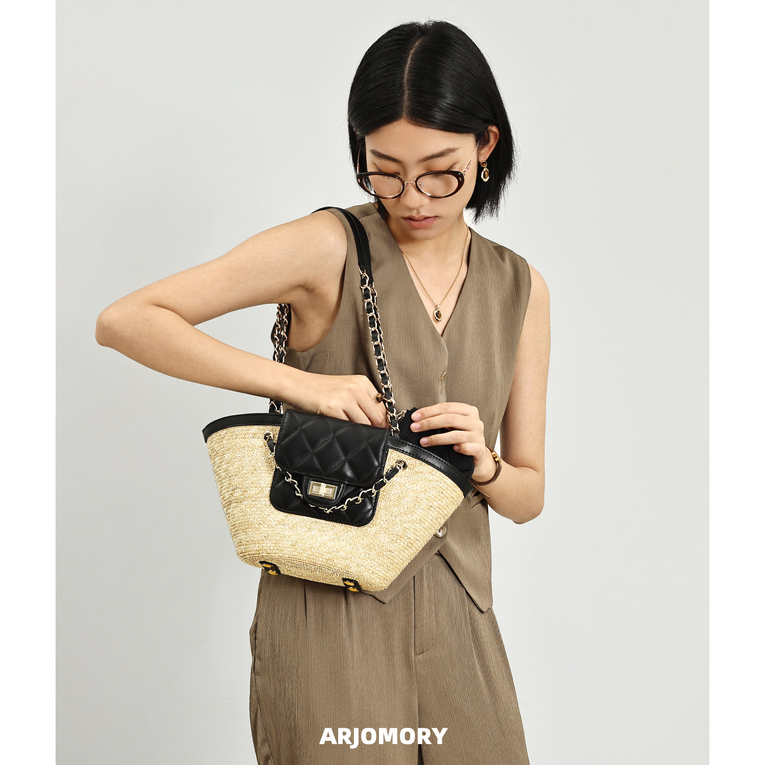 ARJOMORY小众品牌牛皮编织菜篮子女包2026春季出行大容量单肩包包