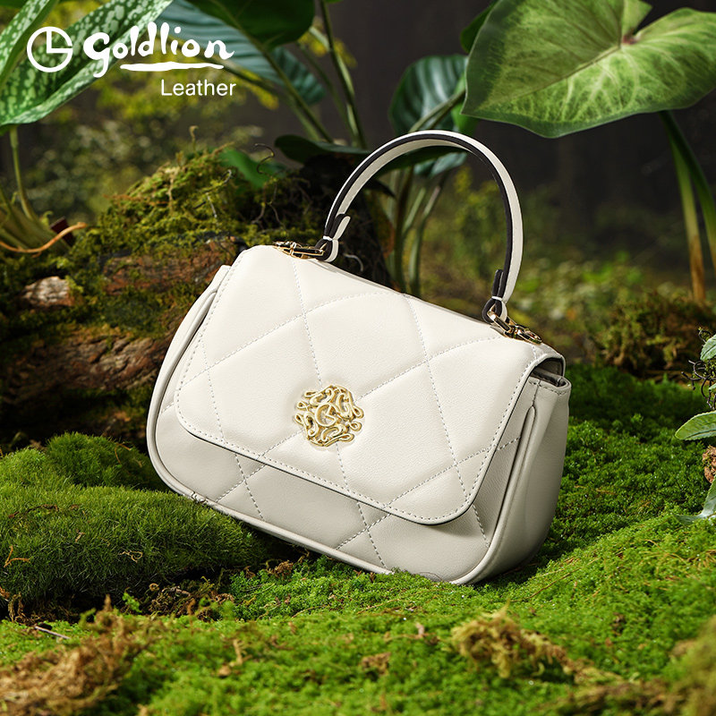 金利来2026新款女包时尚菱格牛皮包包小众设计轻奢女士单肩小方包