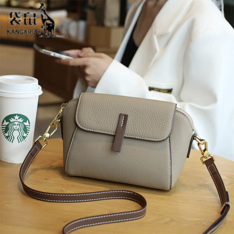 袋鼠(KANGAROO)夏天小方包2025新款单肩包真皮包包女款大容量斜挎包妈妈小包 大象灰