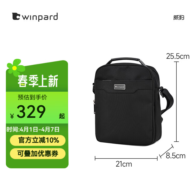 威豹单肩包男通勤商务包男包牛津布男士斜挎包大容量手提包 竖版经典黑(21*8.5*25.5CM)