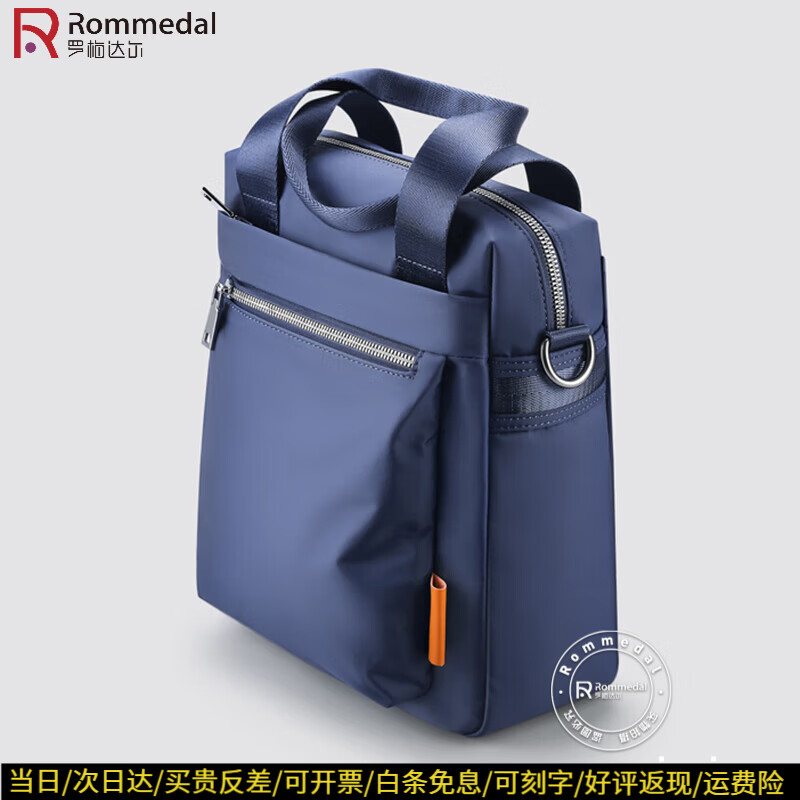 罗梅达尔(Rommedal)斜挎包男士手提包单肩包公文包牛津布竖款简约商务休闲斜挎包男 尊贵蓝【无耳塞孔】 高29*宽26*10cm