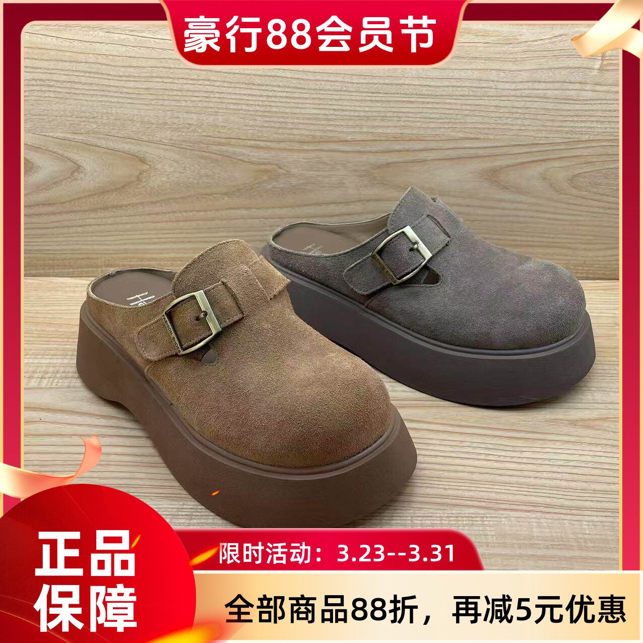 MILLIE'S/妙丽真皮包头半拖鞋女平底内增高穆勒鞋子2026春夏新款