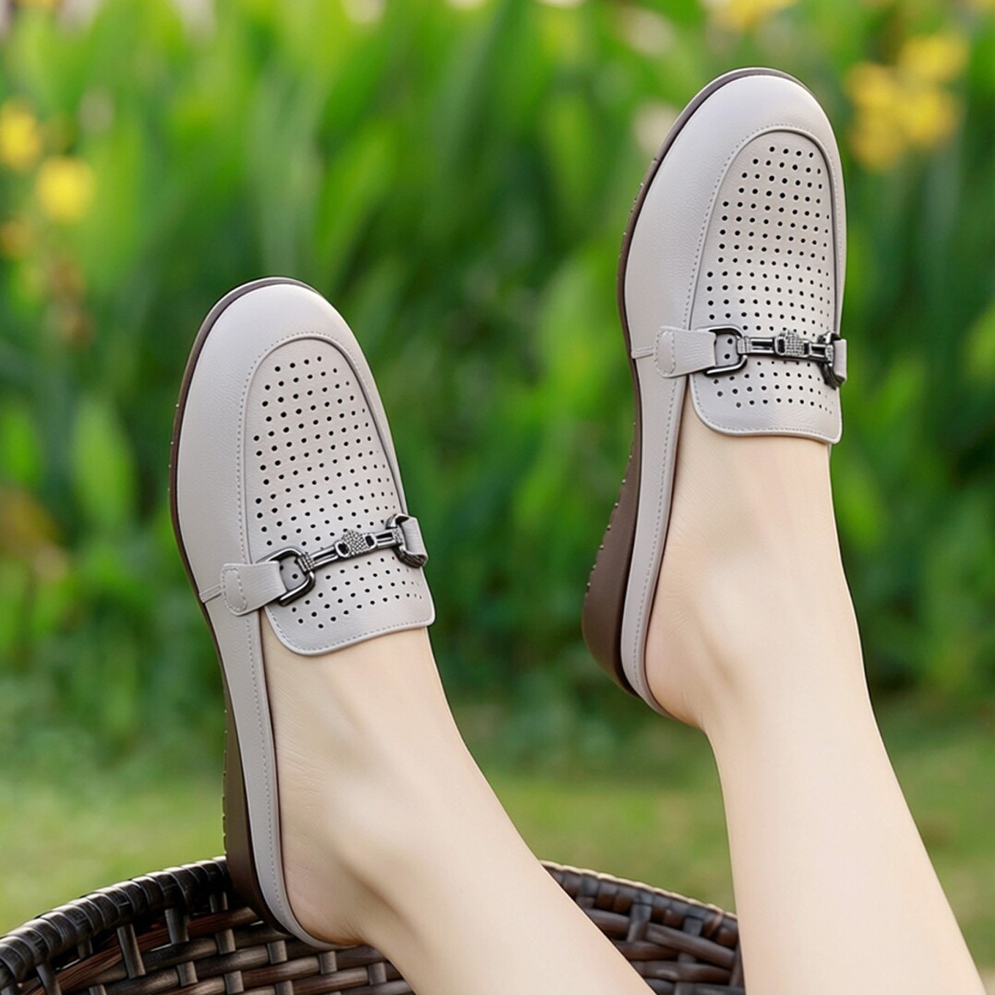 真皮包头半拖鞋女春夏季新款外穿坡跟软底穆勒鞋镂空单鞋妈妈凉鞋