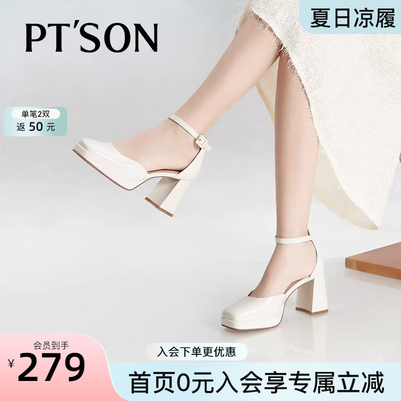 商场同款百田森真皮包头凉鞋女春夏新款防水台中空半凉鞋女