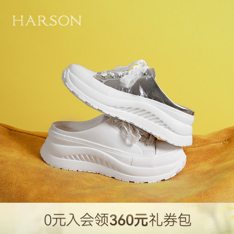 哈森真皮包头拖鞋女夏季新款休闲蝴蝶结运动凉拖HCM258412