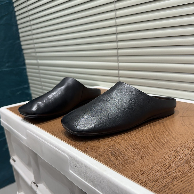极简风真皮包头拖鞋女2026春季平底懒人一脚蹬百搭穆勒鞋黑色半托