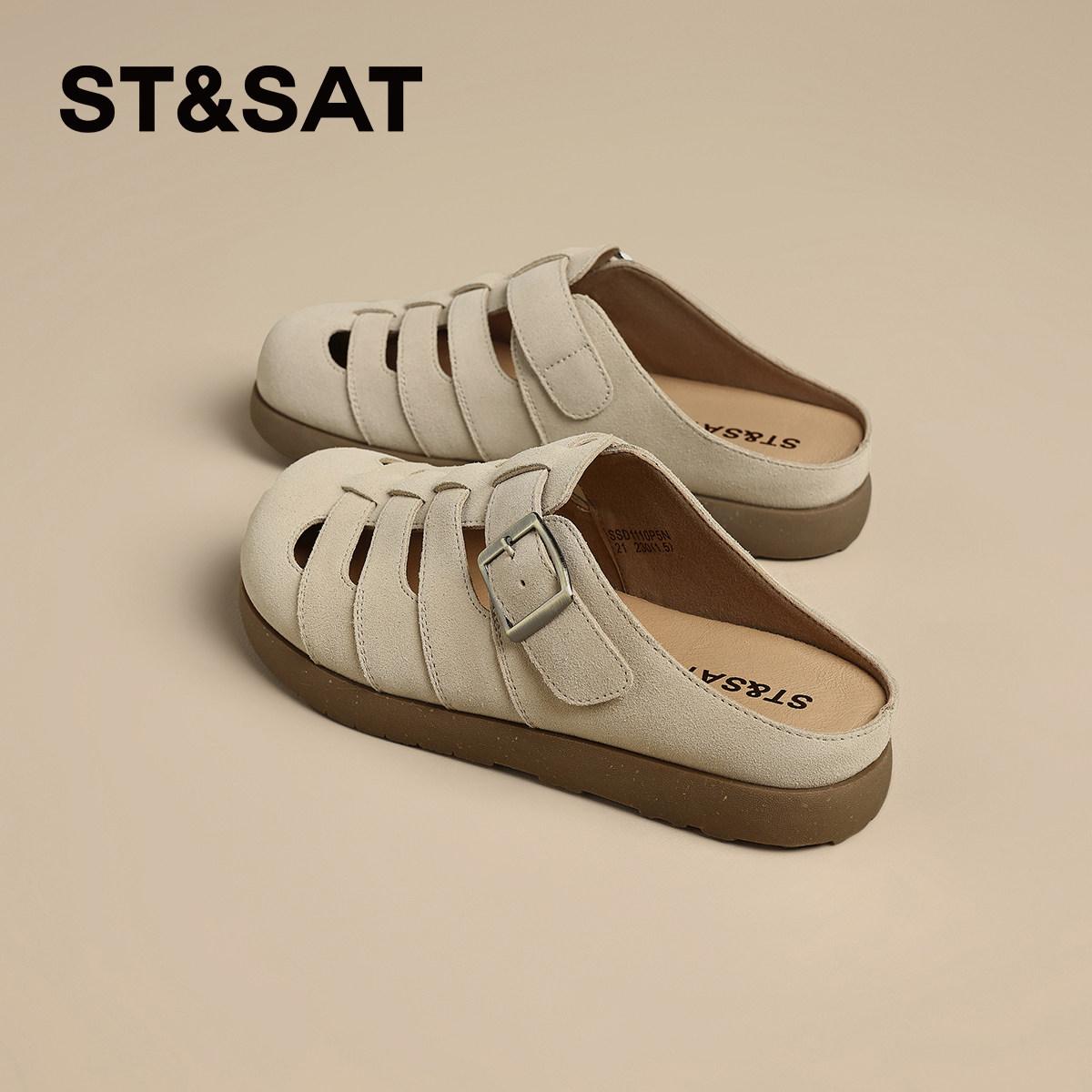 星期六真皮包头拖鞋女夏2025夏季新款软底罗马凉鞋穆勒鞋勃肯半拖