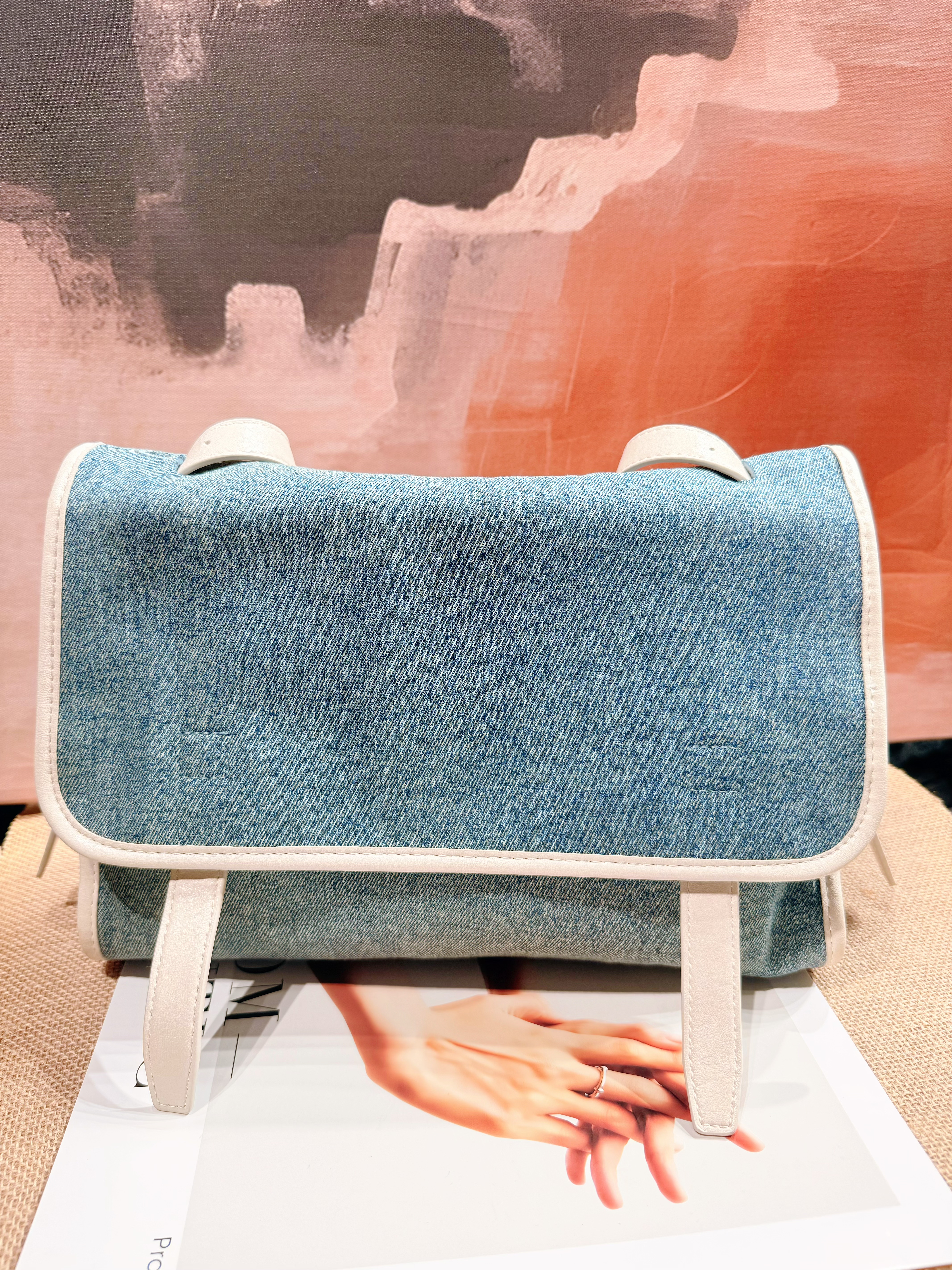 2026新款时尚手提百搭真皮牛仔拼接撞色高级单肩斜挎通勤女皮包
