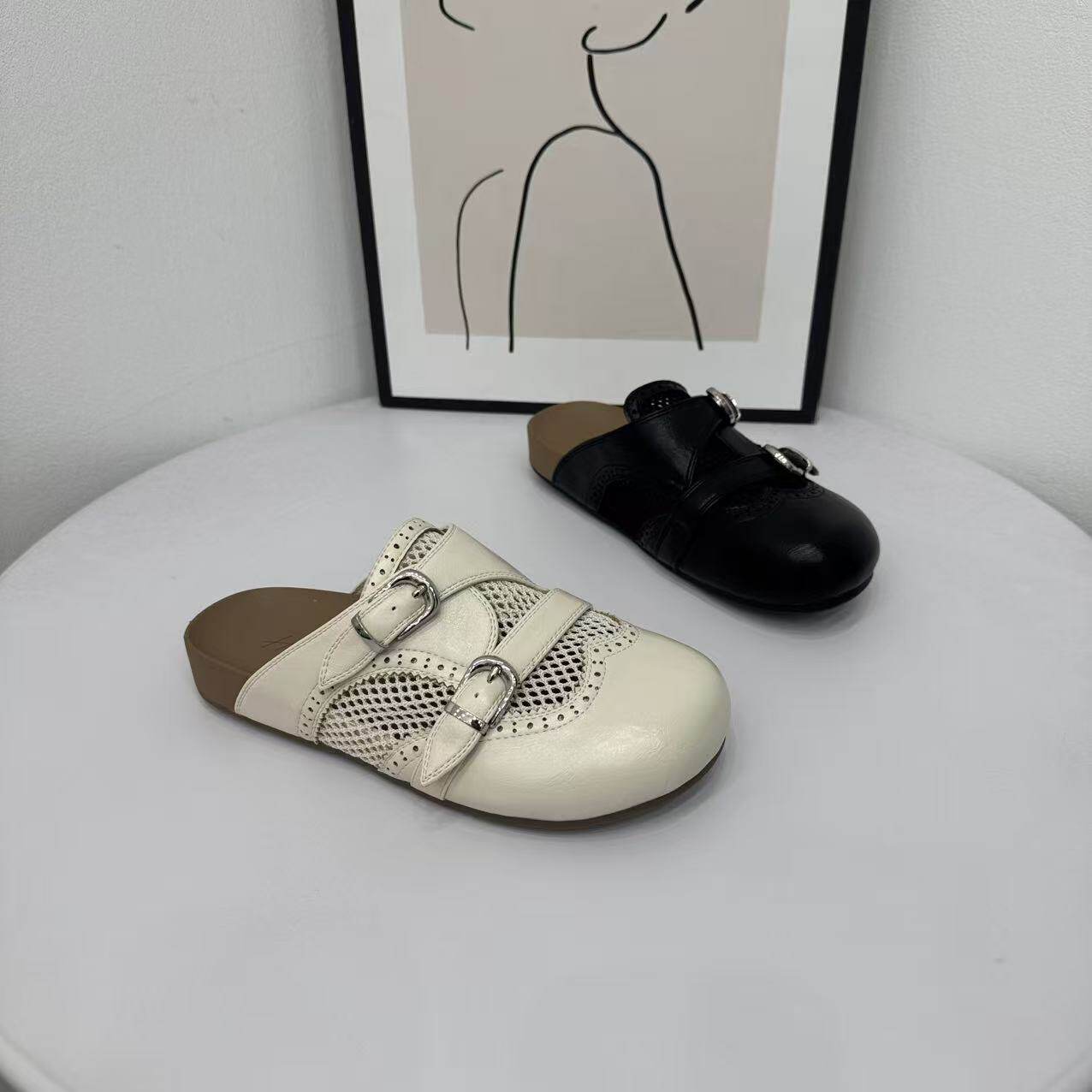 复古真皮包头半拖鞋女外穿2026春夏新款一脚蹬软底懒人博肯半拖鞋
