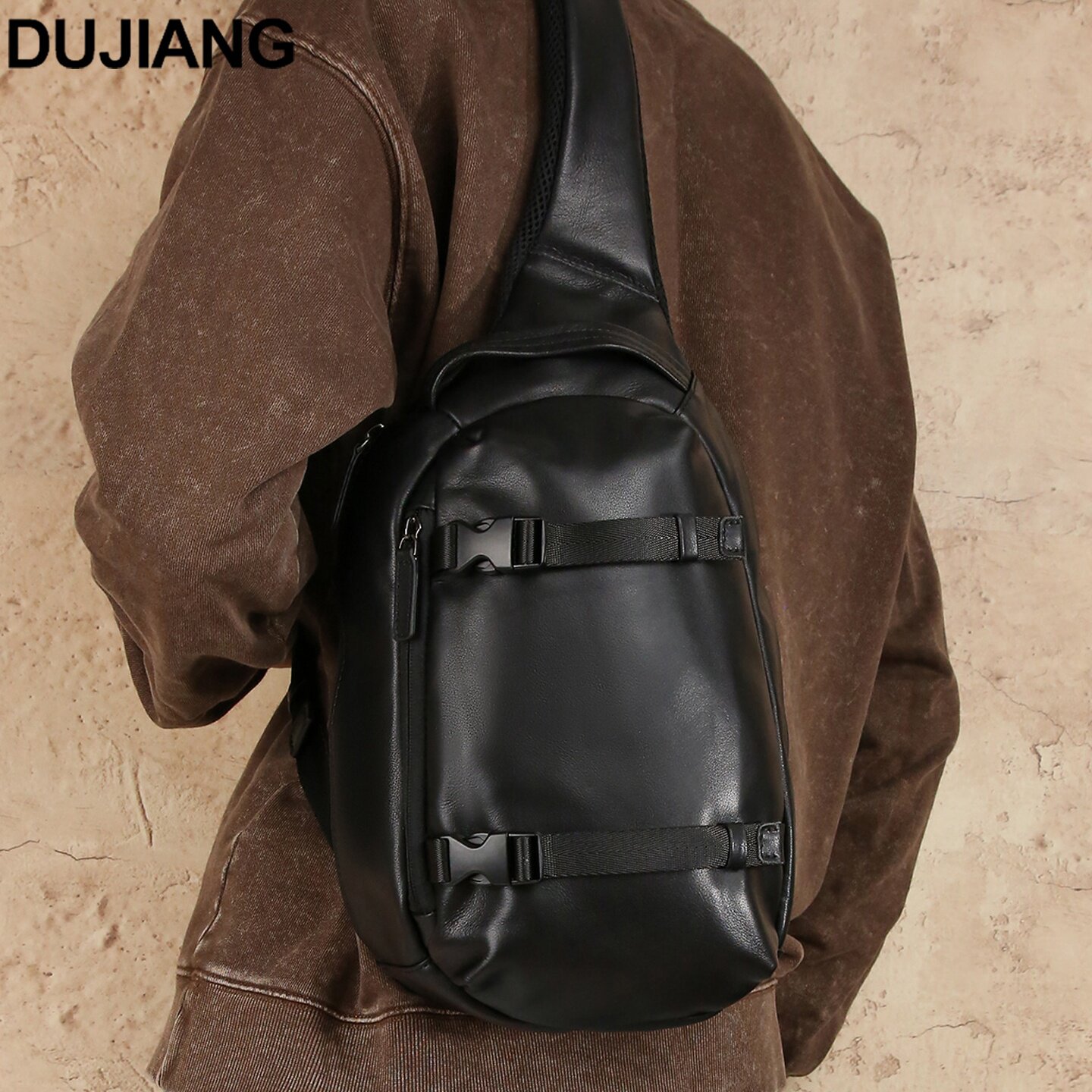男士胸包时尚皮包单肩新款休闲胸前斜肩包潮牌小背包真皮质感男包