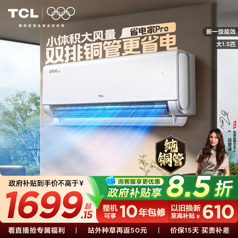 【2026年新品】TCL空调大1.5匹1匹2匹省电家Pro一级冷暖变频挂机
