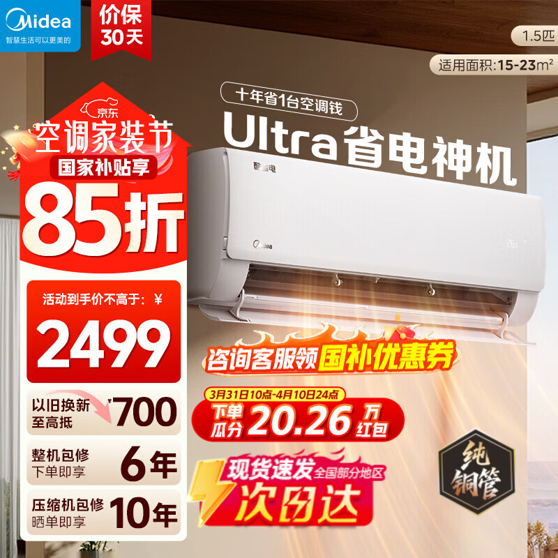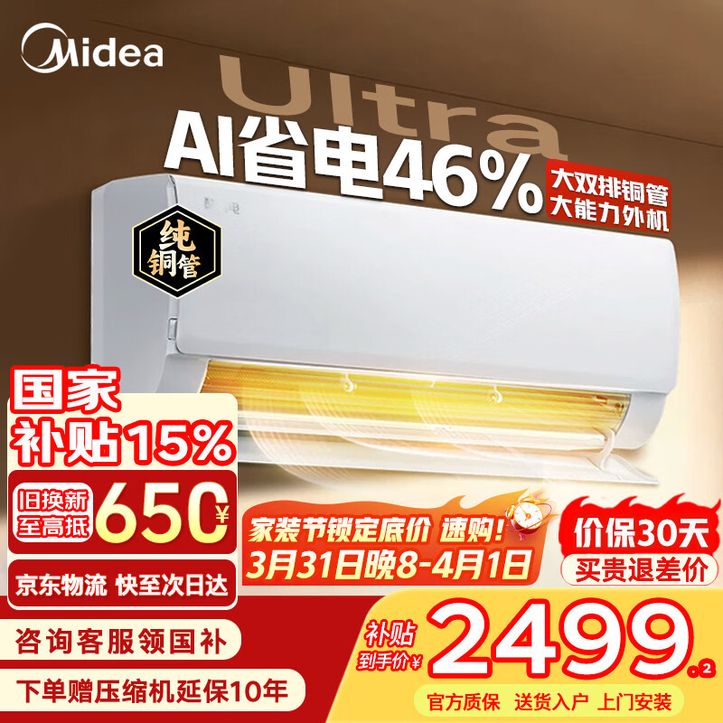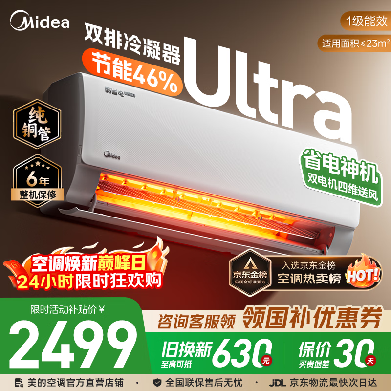 美的(Midea)空调挂机大1.5匹 酷省电二代Pro 双排铜管一级能效变频冷暖家用空调 官方直营 以旧换新 国家补贴 酷省电Ultra 大1.5匹 一级能效