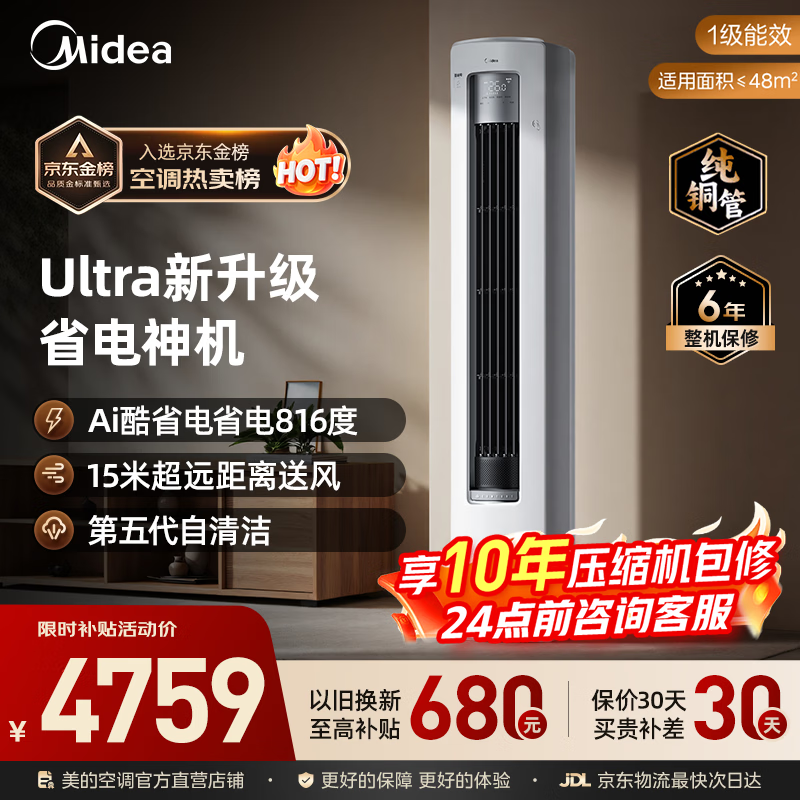 美的(Midea)酷省电Ultra立式空调2匹/3匹客厅立式柜机新一级能效节能省电 变频冷暖智能家用 以旧换新国家补贴 酷省电Ultra 大3匹 一年省816度电